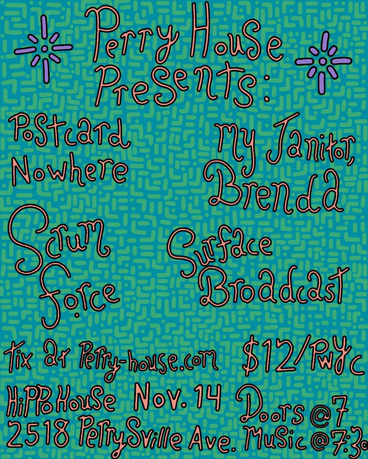 7:30 PMPostcard Nowhere, My Janitor, Brenda, Scum Force, Surface Broadcast
