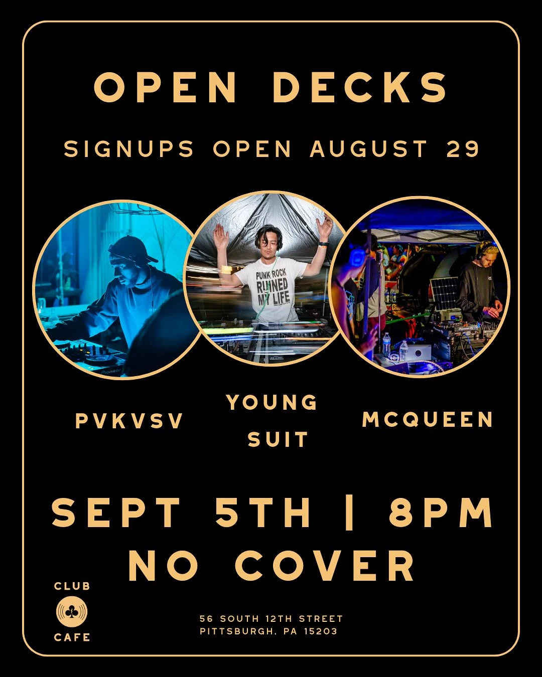 Club Cafe hosts an open decks night with PVKVSV, Young Suit, and McQueen. Club Night at Club Cafe -