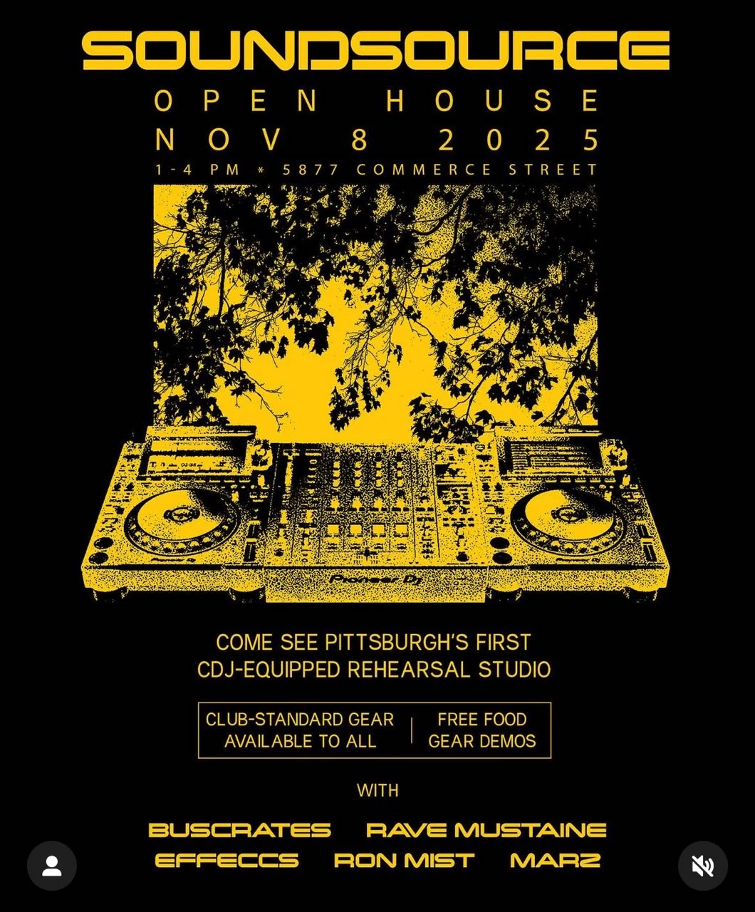 Open house for Soundsource, Pittsburgh's CDJ-equipped rehearsal studio. House Show at SoundsourceSoundsource Buscrates MARZ Rave Mustaine Ron Mist Electronic
