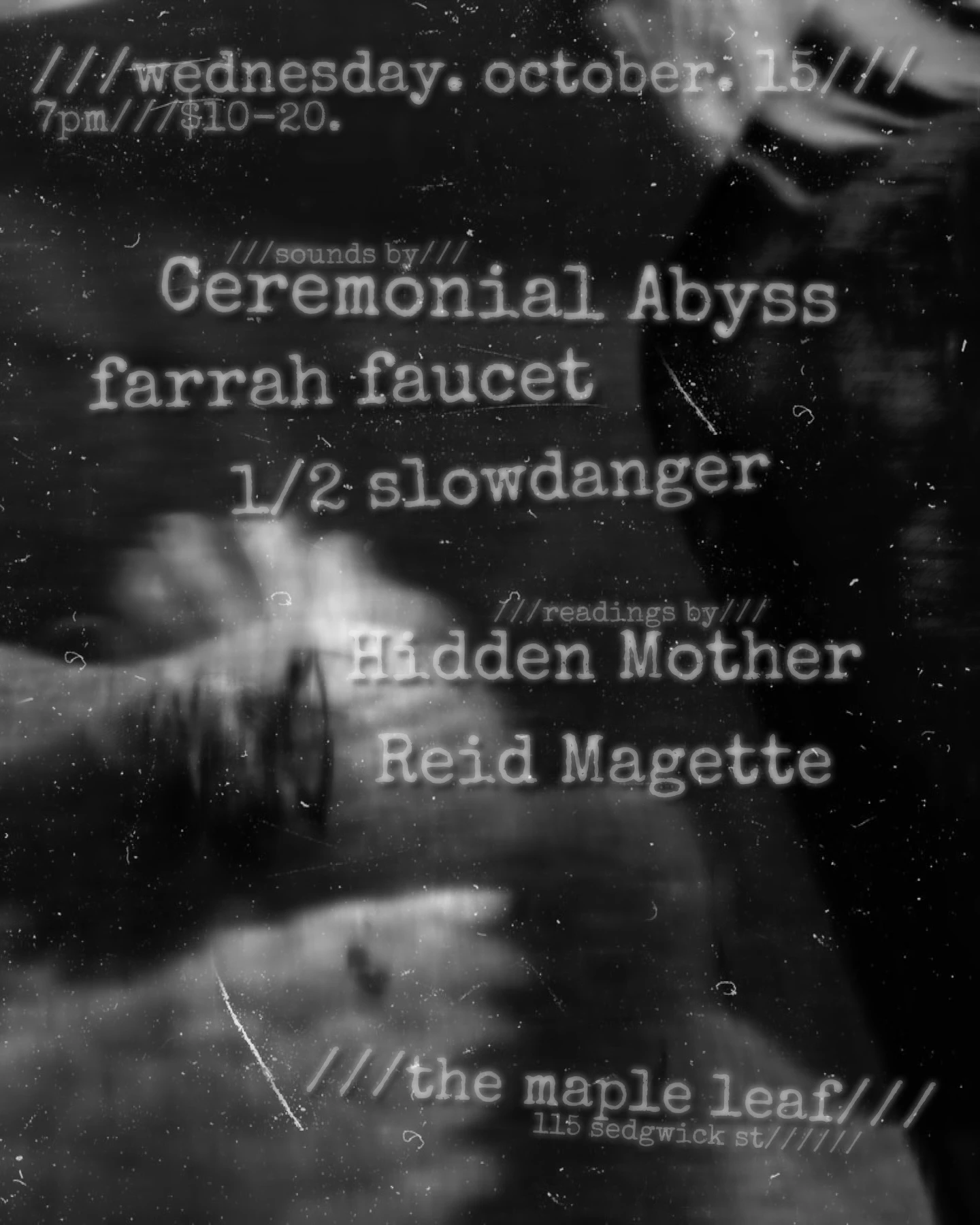 Experimental noise and poetry night with Ceremonial Abyss and guests. Concert at Maple Leaf All AgesThe Maple Leaf Farrah Faucet Slowdanger Noise Ambient Poetry
