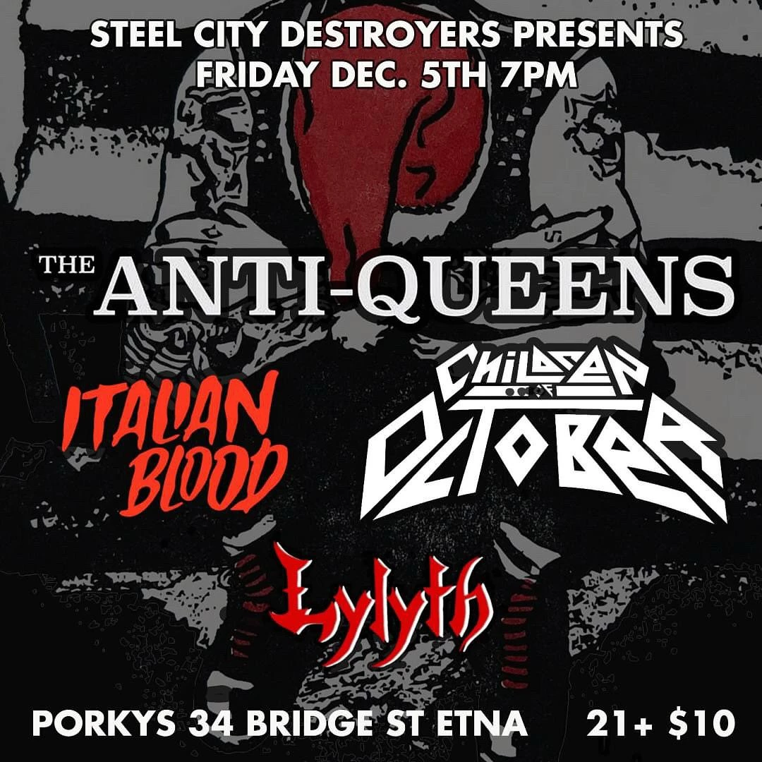 Steel City Destroyers punk show at Porky's with The Anti-Queens and more.Concert