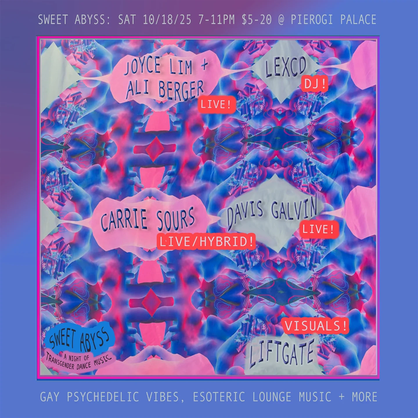 Ali Berger Carrie Sours Davis Galvin LEXCD Liftgate Pierogi Palace House Techno Ambient