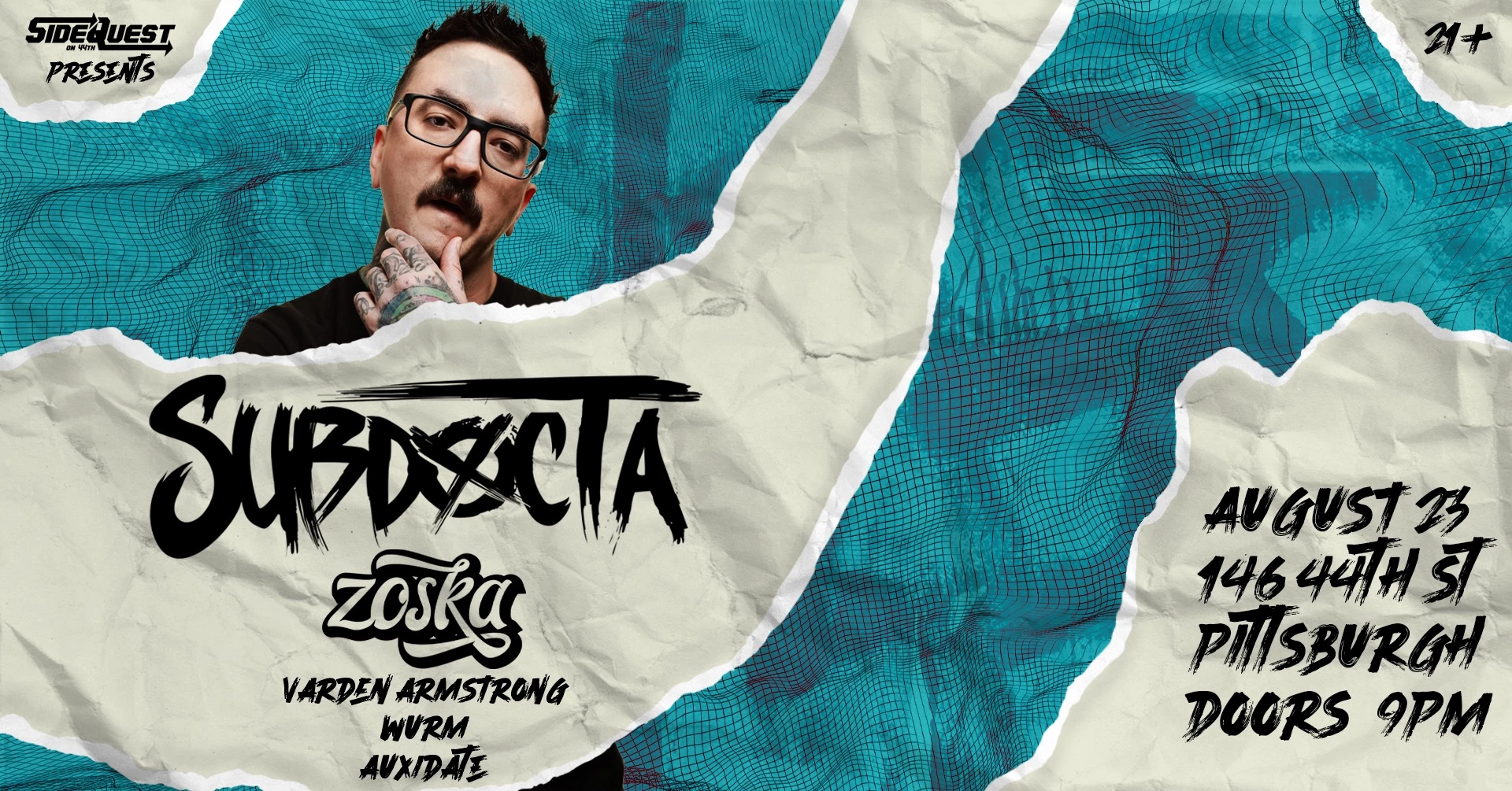 SubDocta headlines Sidequest on 44th with support from Zoska, Varden Armstrong, Wurm, and Auxdate.Concert
