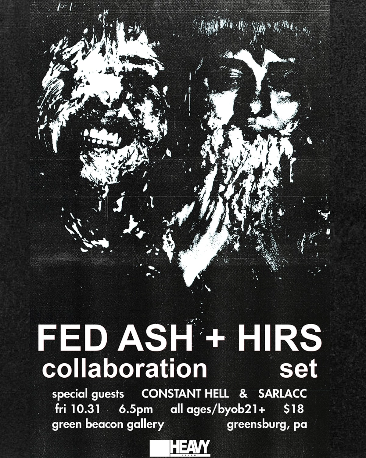 Fed Ash and HIRS perform a collab set with support from Constant Hell and Sarlacc. Concert at Green Beacon Gallery All Ages $18 -