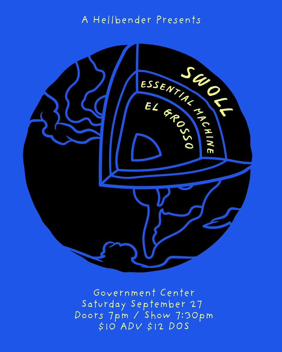 A Hellbender show at Government Center with Swoll, Essential Machine & El Grosso. Concert at The Government Center $10 / $12 -