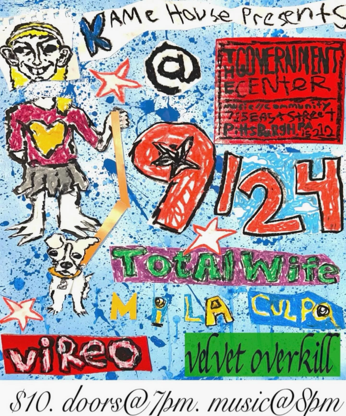 Kame House show at The Government Center featuring Total Wife, Mi La Culpa, Vireo & Velvet Overkill Concert at The Government Center All Ages $10Kame House The Government Center Vireo Velvet Overkill Rock Punk Indie Dream Pop
