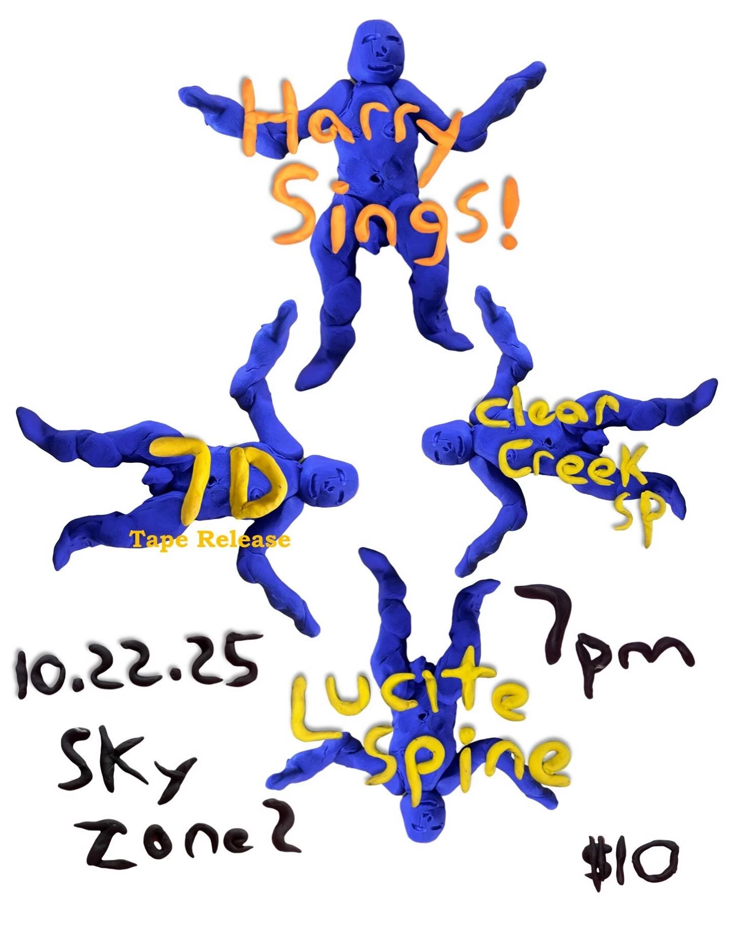 Tape release show for Harry Sings! with Lucite Spine and Clear Creek Sp at Sky Zone. Concert at Skyzone 2 All Ages $10 / $10 -