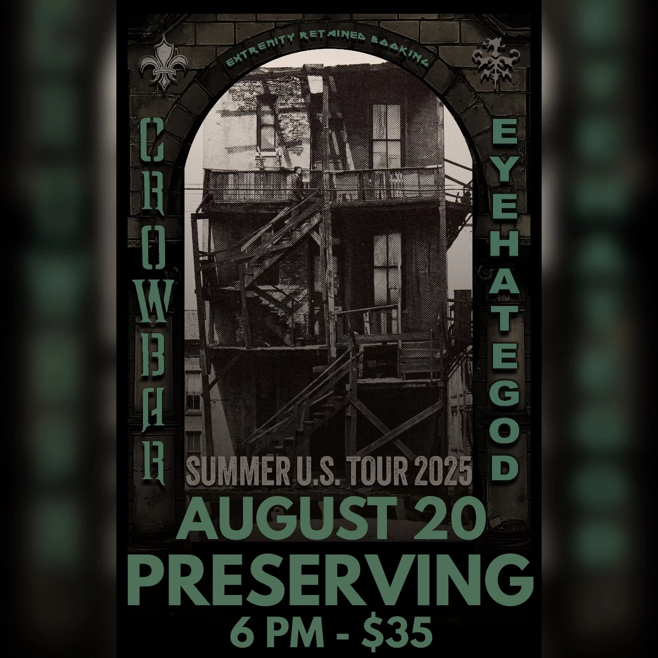 Legendary sludge/doom acts Crowbar & Eyehategod bring their U.S. tour to Preserving. Concert at Preserving Underground All Ages $35 / $35 -
