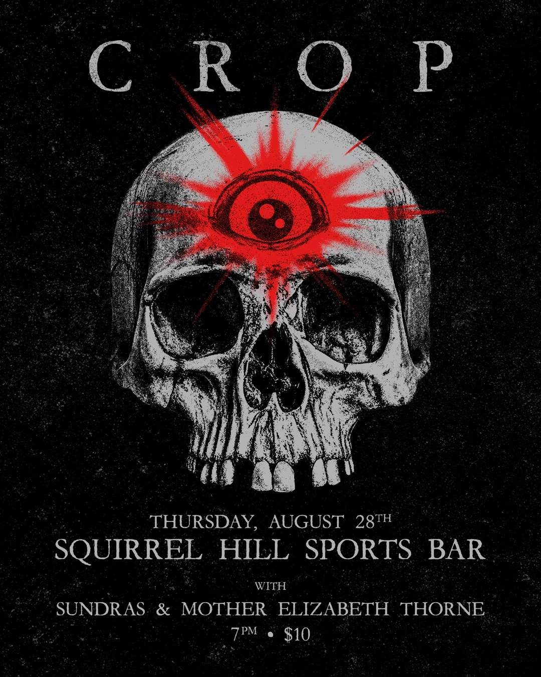 Dark experimental show at Squirrel Hill Sports Bar featuring Crop, Sundras, and Mother Elizabeth Thorne. Concert at Squirrel Hill Sports Bar All Ages $10 / $10Sundras Mother Elizabeth Thorne Squirrel Hill Sports Bar Metal Doom Metal
