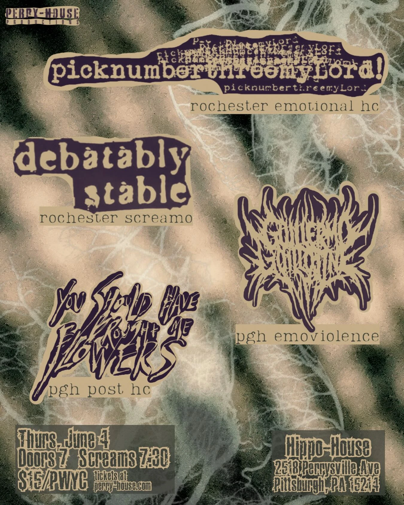 A night of emotional hardcore, screamo, emoviolence, and post-hardcore at Hippo-House in Pittsburgh.
